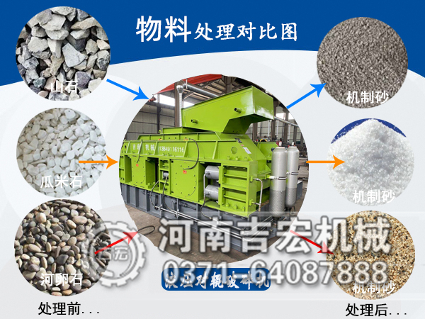 每小时产量均在50吨的对辊破型号:750×500,800×600,1000×700,时产10-50吨,属于中型对辊破碎机。具体配置要以实际物料性质以及成料要求为主,另外,这里有专业的生产技术经理,还会结合企业的生产环境、基建设置、投资预算等,按照需求、为您量身定制,让您告别选择困难症,直接为您配置齐全,让您利润更好。一套时产100吨对辊破碎机制沙生产线设备配置下来要多少钱,对于不同需求价格是存在差异的,因为对辊破碎机生产厂在搭配时选用方式不一样,不同种类、型号设备的生产成本不同,而且每个厂家有各自的生产方式、经营模式,设备品质有好有坏,所以价格稍有差距。